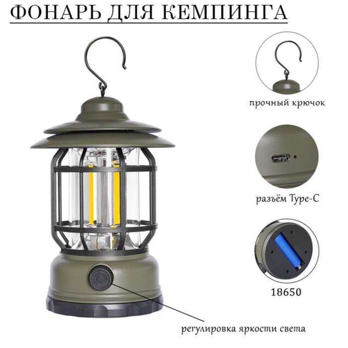 Фонарь кемпинговый аккумуляторный, СОВ, 18650, 10 Вт, 800 мАч, регулировка яркости