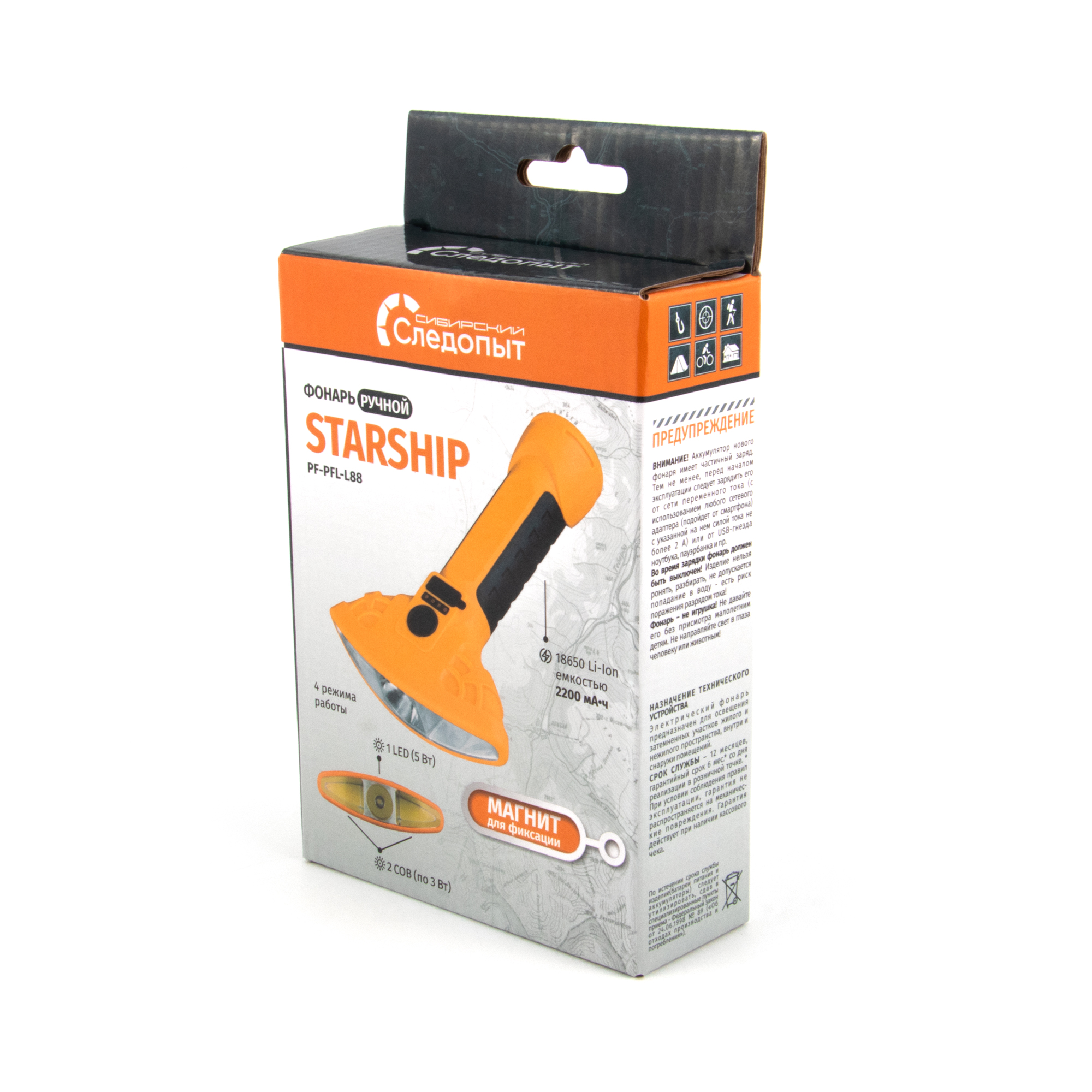 Фонарь ручной "СИБИРСКИЙ СЛЕДОПЫТ-STARSHIP", 1 LED+2 COB, аккум.1x2200mAh/120/