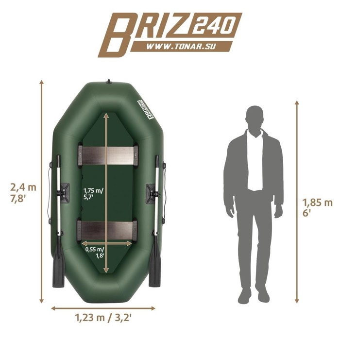 Лодка YUGANA 2600 С слань, цвет олива