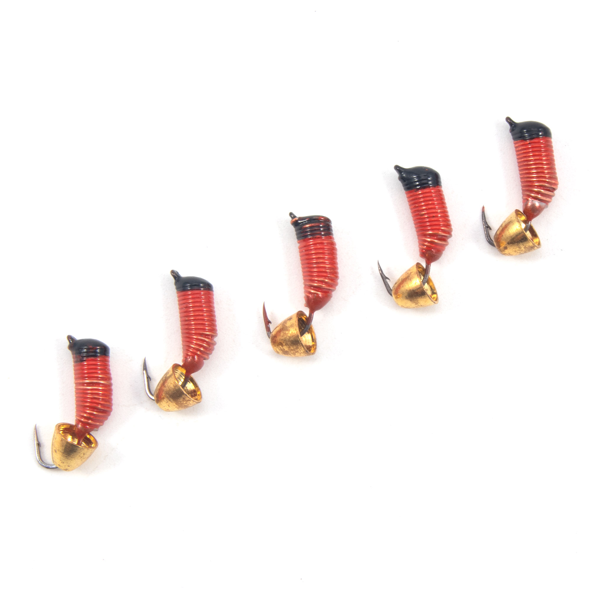 Мормышка вольф. безнасадочная "ЯМАН" Ручейник №6, d-2,5 мм, L-8.5 мм, вес 0,90 гр., колокол золото, цв. красный (уп. 5 шт.)