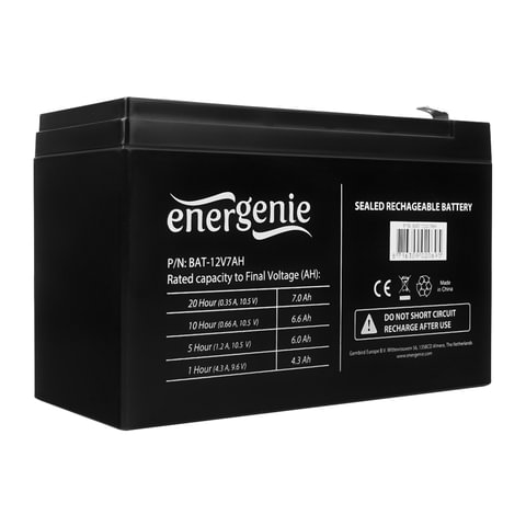 Аккумуляторная батарея для ИБП любых торговых марок, 12 В, 7 Ач, 151x65x95 мм, ENERGENIE, BAT-12V7AH