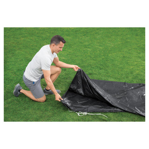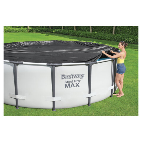 Специальный защитный тент-покрывало для бассейнов каркасных и с надувным бортом Fast Set BESTWAY диаметром 305см (D305см) предназначен для сохранения водной поверхность бассейна от пыли, листвы, и другого мусора.