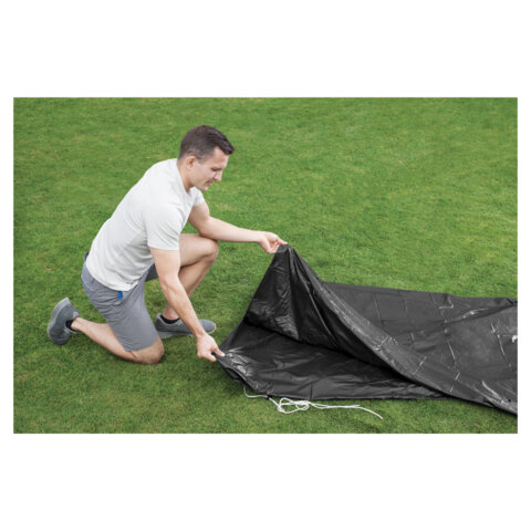 Специальный защитный тент-покрывало для бассейнов каркасных и с надувным бортом Fast Set BESTWAY диаметром 366см (D370см) предназначен для сохранения водной поверхность бассейна от пыли, листвы, и другого мусора.