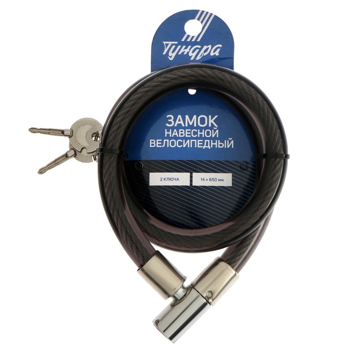 Замок навесной велосипедный ТУНДРА, 14х650 мм., 2 ключа , цвет черный