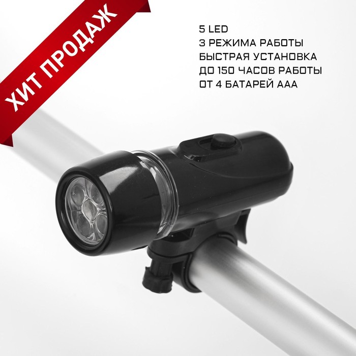 Фонарь велосипедный передний "Мастер К", водонепроницаемый, 5 диодов, 3 режима, 4ААА