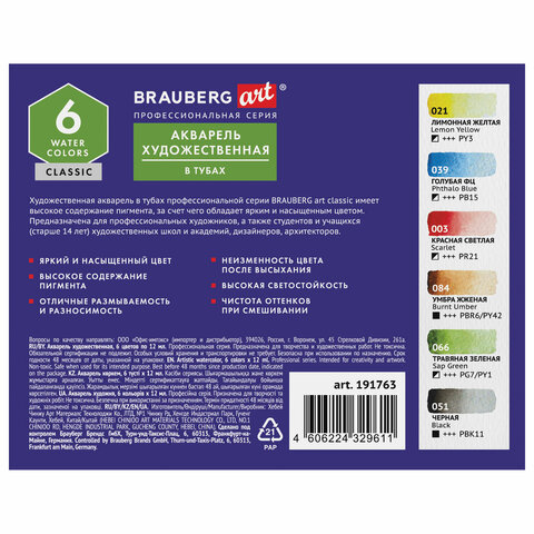 Художественная акварель профессионального качества в тубах BRAUBERG ART CLASSIC предназначена для живописи.