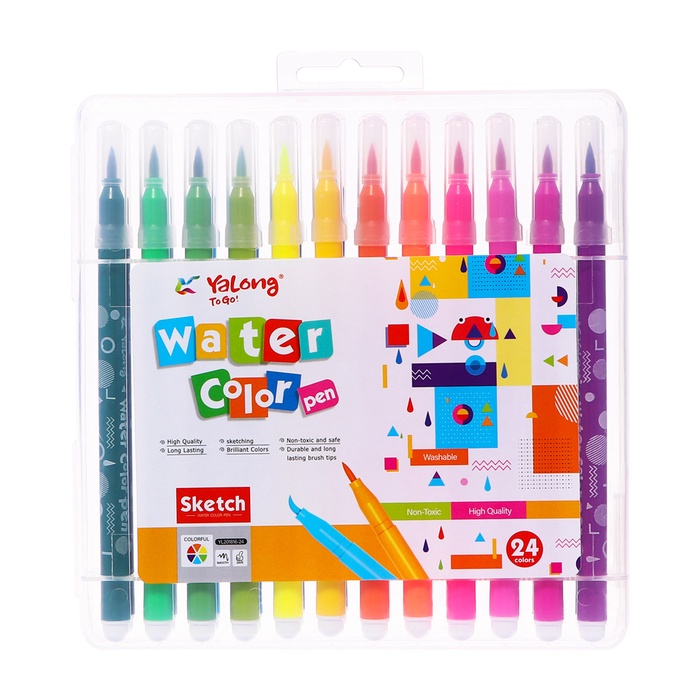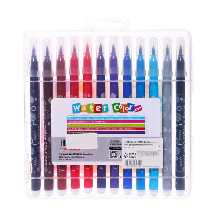 Набор акварельных маркеров 12 цветов с наконечником кистью в пластиковом пенале