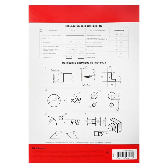 Альбом для черчения А4, 20 листов, блок 200 г/м², на клею, ErichKrause, без рамки