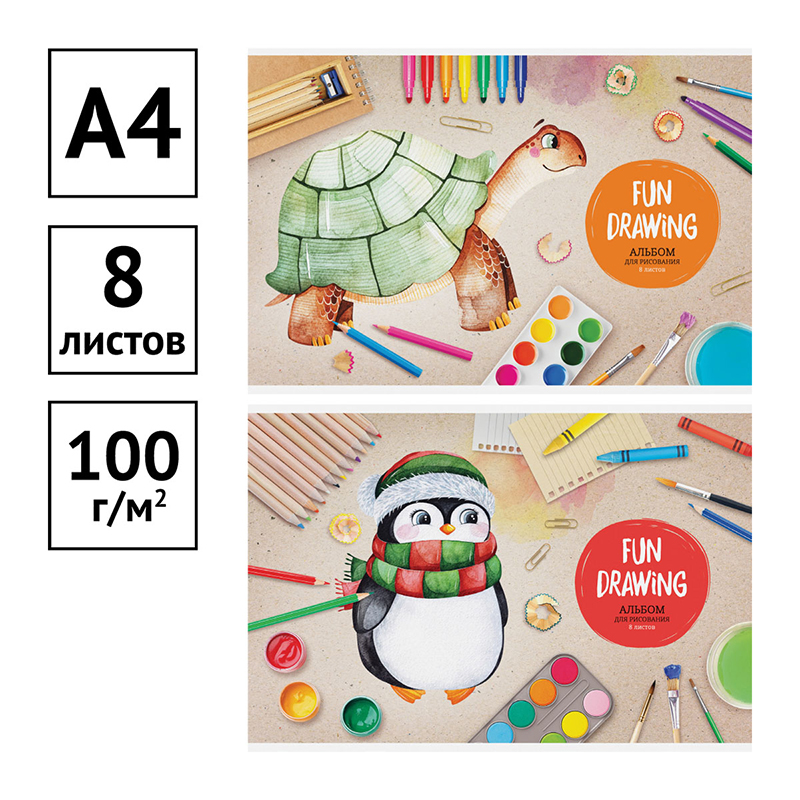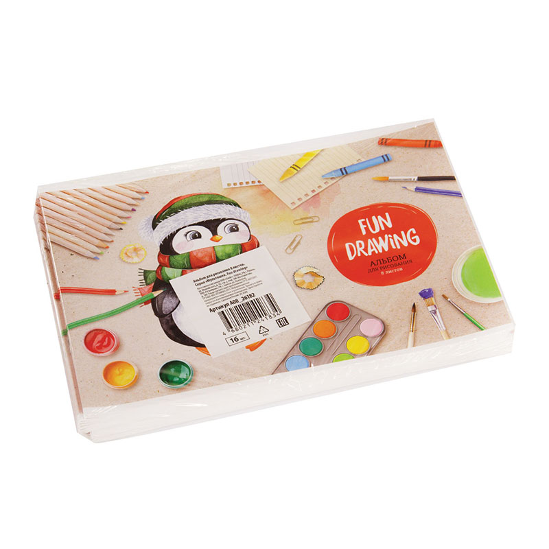 Альбом для рисования ArtSpace «Мультяшки. Fun drawing» на скрепке. Плотность бумаги: 100 г/кв.м. Размер: 203*290 мм. Внутренний блок: офсетная бумага. Материал обложки: мелованный картон. Отлично подходит для рисования различными типами красок, фломастерами, цветными и чернографитными карандашами, гелевыми ручками.<br/>• Формат: А4;<br/>• Тип скрепления: скрепка;<br/>• Количество листов: 8.