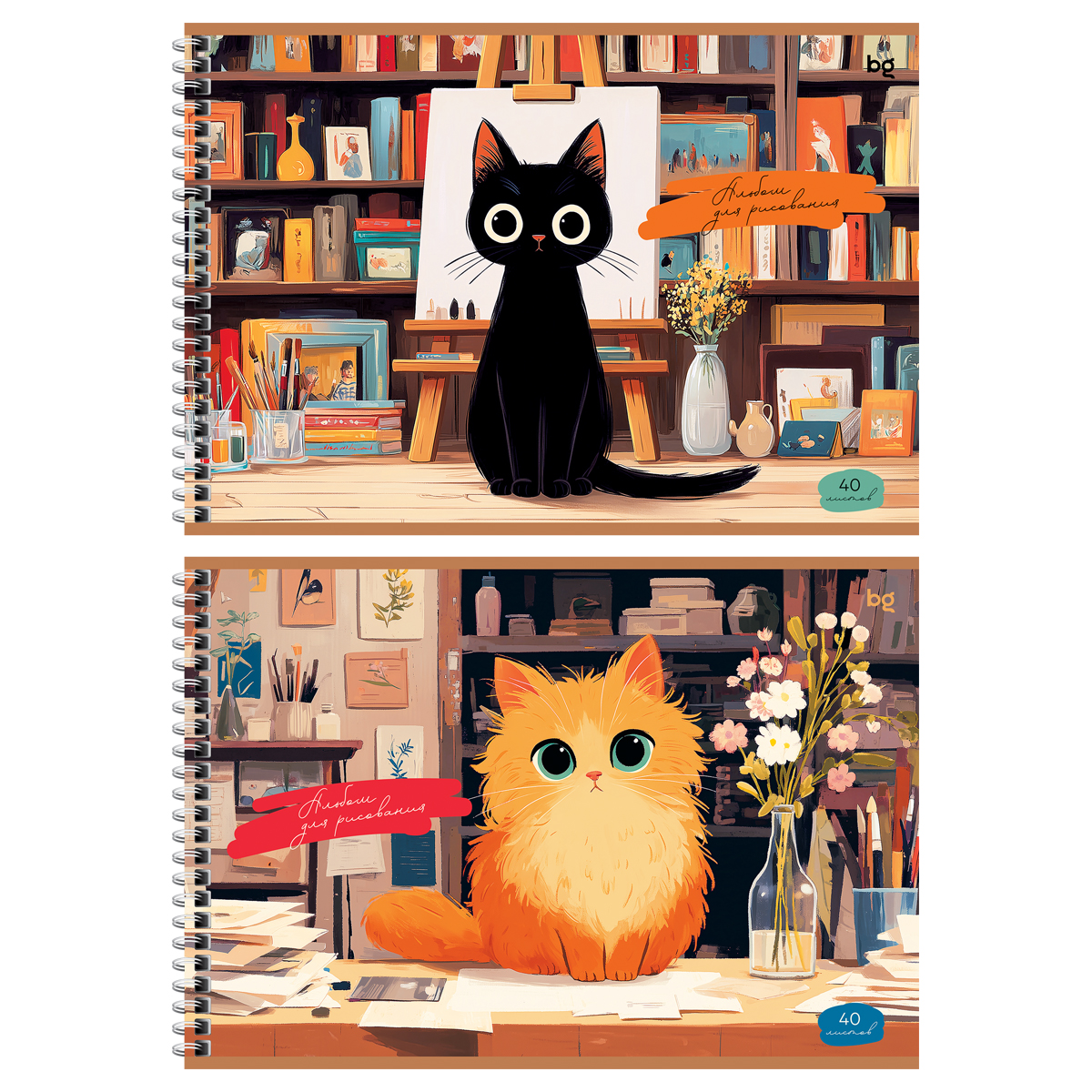 Альбом для рисования 40л., А4, на скрепке BG "Кот и пёс"