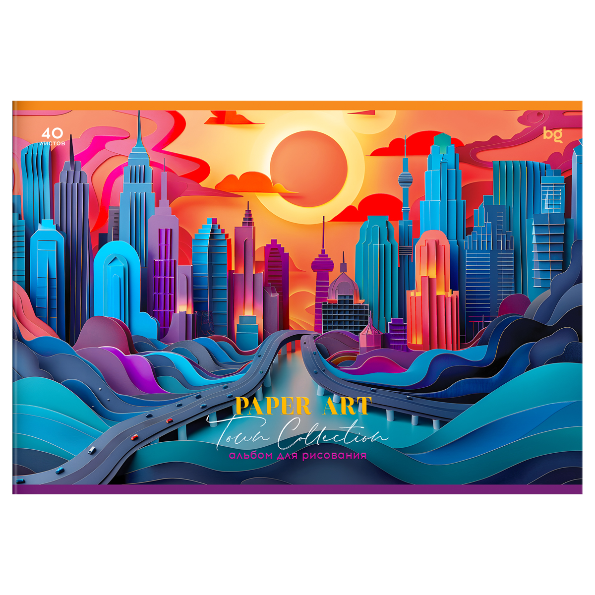 Альбом BG "Paper art" подходит для рисования различными типами красок, фломастерами, цветными и чернографитными карандашами, гелевыми ручками. Формат — А4 (205*295 мм). Альбом состоит из 40 листов офсетной бумаги 100% белизны. Обложка сделана из высококачественного мелованного картона. Листы скреплены скрепкой. Плотность внутреннего блока составляет 100 г/м2, что соответствует техническому регламенту «О безопасности продукции, предназначенной для детей и подростков.