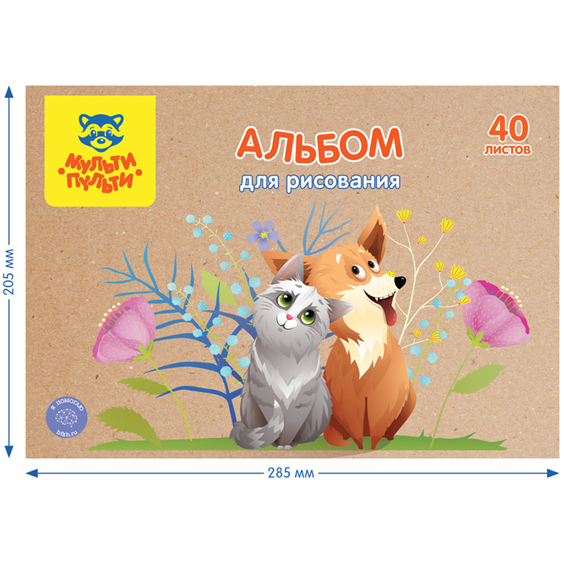 Альбом для рисования «Мульти-Пульти» состоит из 40 листов формата А4 и отлично подходит для рисования различными типами красок, фломастерами, цветными и чернографитными карандашами, гелевыми ручками. Плотность бумаги: 100 г/кв.м. Размер: 205*285 мм. Внутренний блок: офсетная бумага. Материал обложки: крафт картон. Благодаря этому альбом выглядит необычно, ярко и интересно.