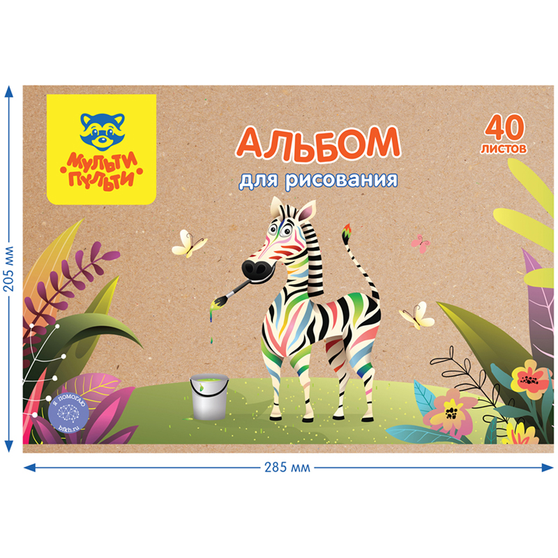 Альбом для рисования «Мульти-Пульти» состоит из 40 листов формата А4 и отлично подходит для рисования различными типами красок, фломастерами, цветными и чернографитными карандашами, гелевыми ручками. Плотность бумаги: 100 г/кв.м. Размер: 205*285 мм. Внутренний блок: офсетная бумага. Материал обложки: крафт картон. Благодаря этому альбом выглядит необычно, ярко и интересно.