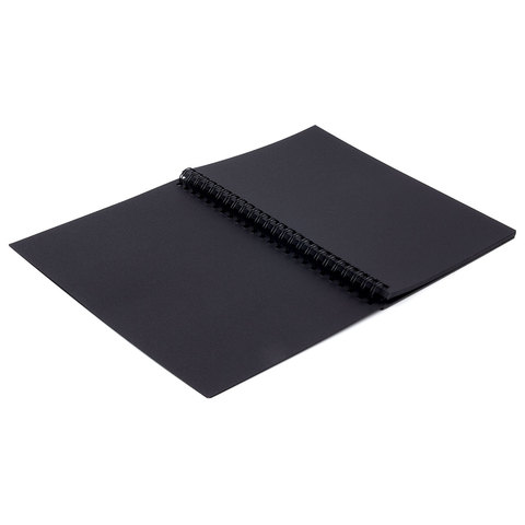 Привлекательная обложка выполнена из импортного мелованного картона. В блокноте 32 листа бумаги черного цвета плотностью 120 г/м2, т.е. 32 возможности воплотить свою задумку! Листы удобно скреплены спиралью - это позволяет переворачивать их на 360 градусов. Задняя подложка жесткая, что позволит делать зарисовки и наброски на весу. Удобный формат размером 148х210 мм.
