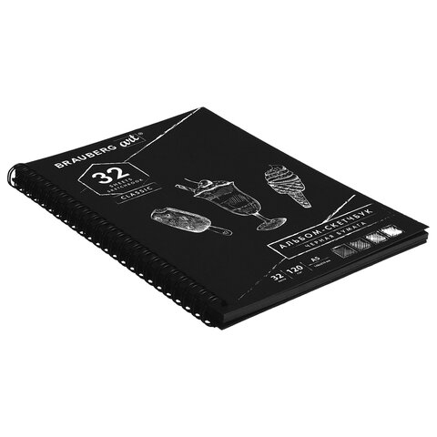 Альбом для эскизов и графики с жесткой подложкой. Внутренний блок - специальная художественная гладкая бумага черного цвета. Предназначен преимущественно для работы с белыми графическими материалами (гелевые ручки, карандаши, мел и прочие).