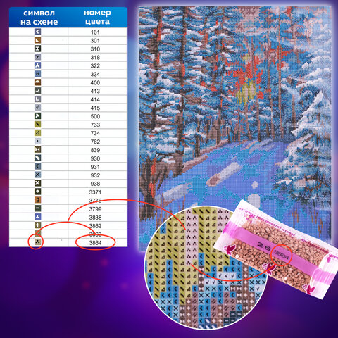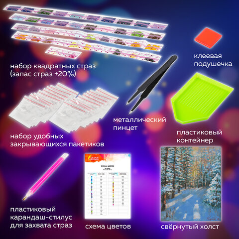 - набор квадратных страз разных цветов, пронумерованных в соответствии со схемой;