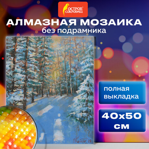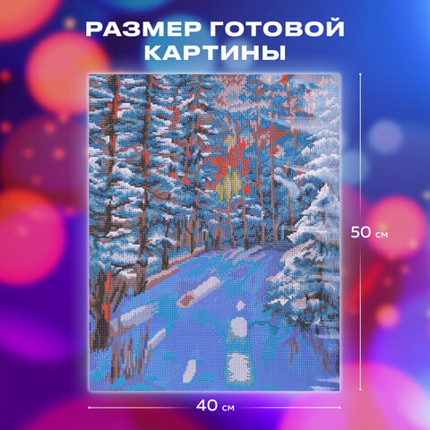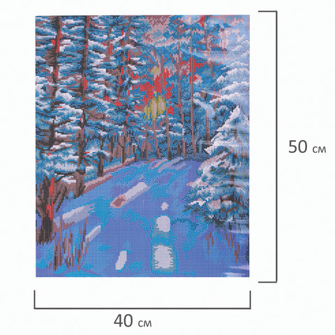 Размер готовой картины составляет 40х50 см. Картина полностью заполняется квадратными акриловыми стразами, благодаря чему готовая работа блистает и переливается на свету.