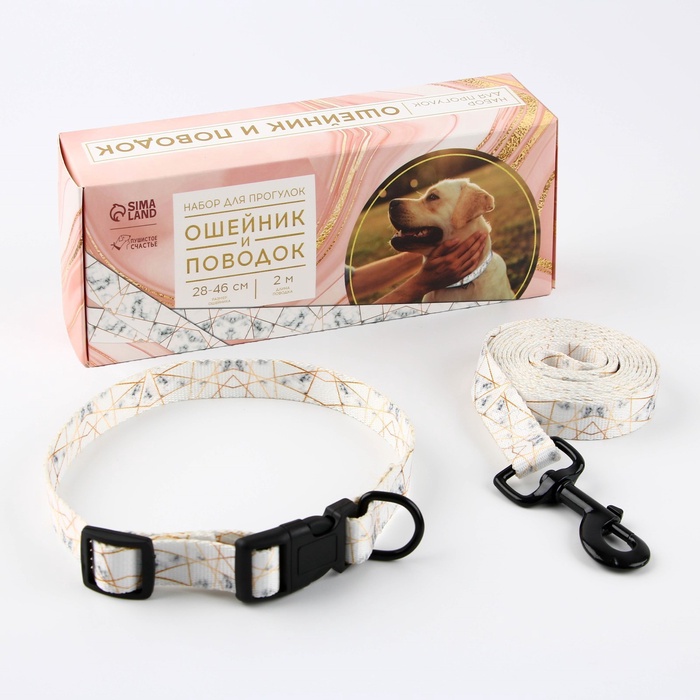 Комплект ошейник (26-34х1.4 см) и поводок (120х1 см) из экокожи, жёлтый