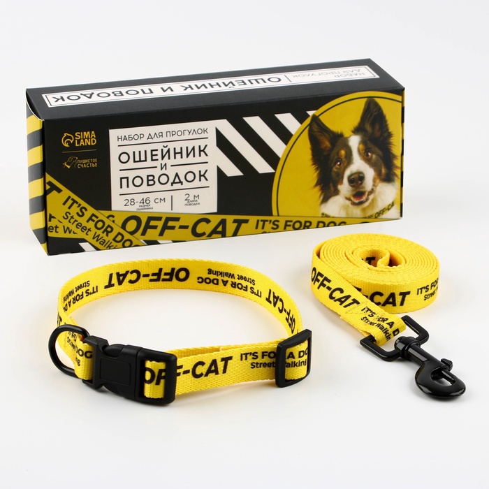 Комплект ошейник (26-34х1.4 см) и поводок (120х1 см) из экокожи, жёлтый
