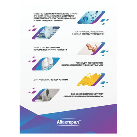 Антисептик для рук и поверхностей спиртовой (75%) с дозатором 1 л, АБАКТЕРИЛ-ИПС-75, дезинфицирующий, жидкость