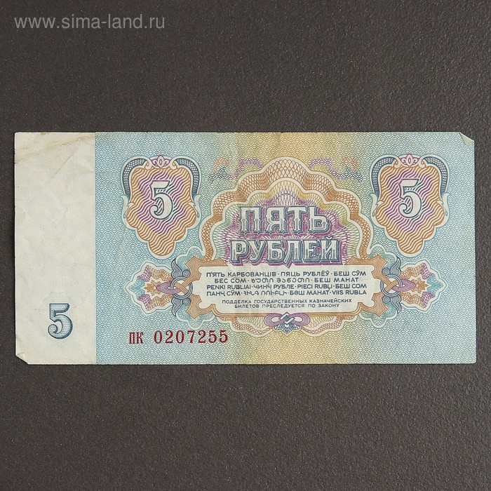 Банкнота 5 рублей СССР 1991, с файлом, б/у