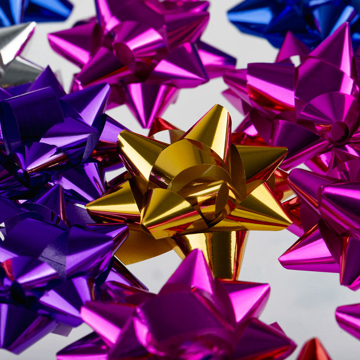 Набор декоративных бантов MESHU станет отличным дополнением к подарку. В наборе 50 бантов формы звезда в ярких красивых цветах. Размер банта в собранном виде 4,3 см.