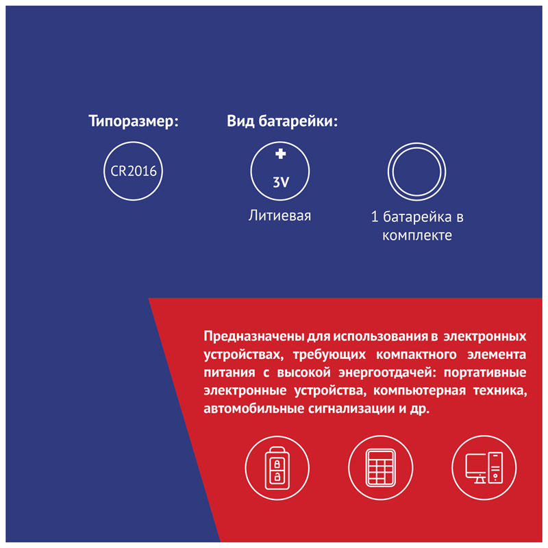 Дисковые литиевые батарейки предназначены для использования в устройствах, требующих компактного элемента питания с высокой энергоотдачей: портативная электроника, компьютерная и фототехника, автомобильные сигнализации и др. Их достоинствами являются высокая энергоемкость, длительный срок службы, малый ток саморазряда, возможность работы в широком диапазоне температур.