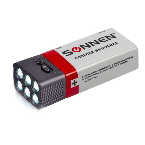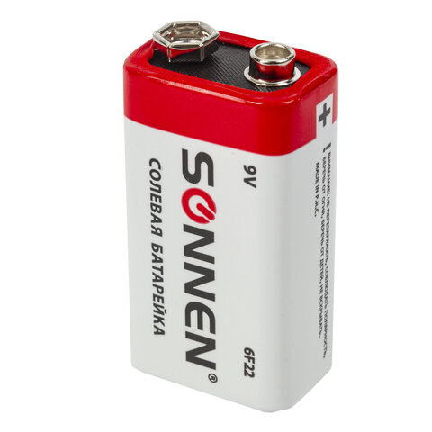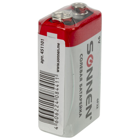 Солевые батарейки SONNEN типоразмера 9V идеально подходят для приборов с низким потреблением энергии. Рекомендуется использовать в электронных часах.