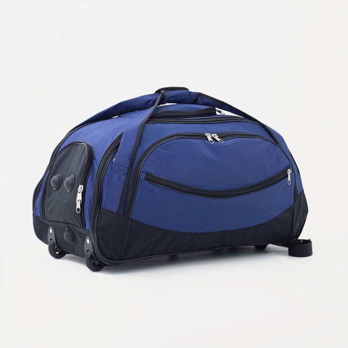 Сумка дорожная на колёсах, отдел на молнии, отдел для обуви, 3 наружных кармана, длинный ремень, цвет чёрный/синий