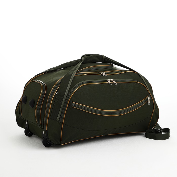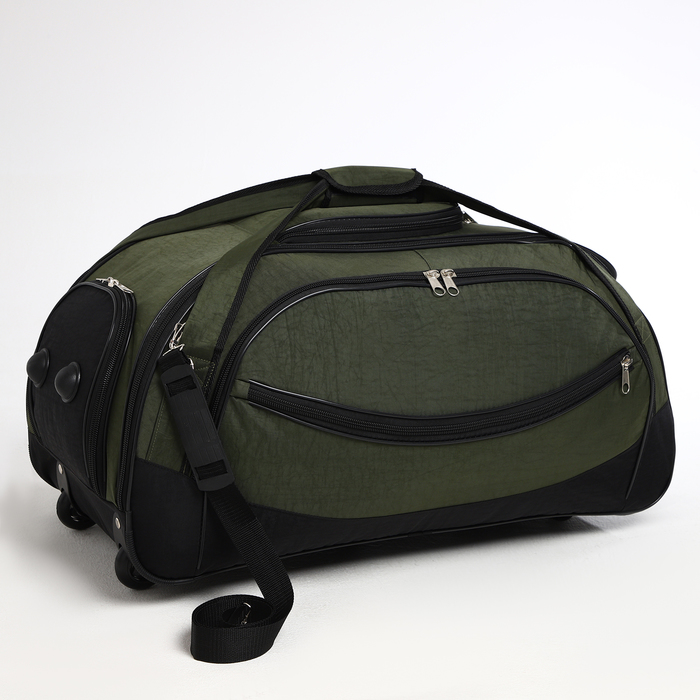 Сумка дорожная на колёсах, отдел на молнии, отдел для обуви, 3 наружных кармана, длинный ремень, цвет хаки