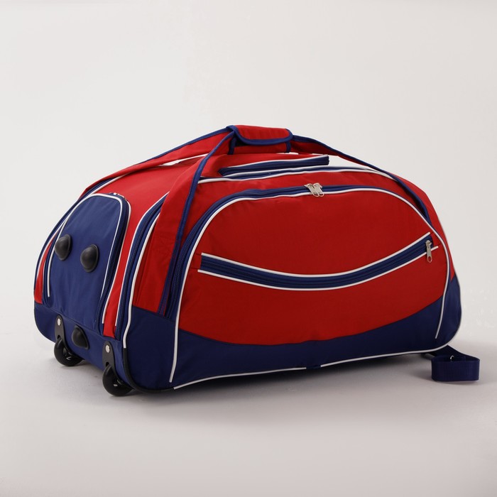 Сумка дорожная на колёсах, отдел на молнии, отдел для обуви, 3 наружных кармана, длинный ремень, цвет красный/синий