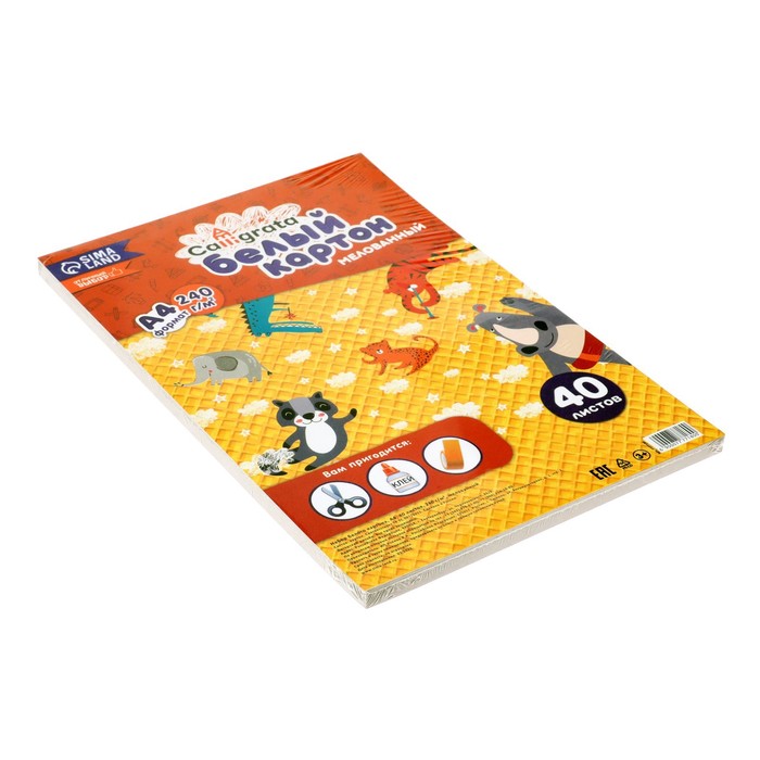 Картон белый мелованный односторонний А4, 8 листов 230г/м² в папке