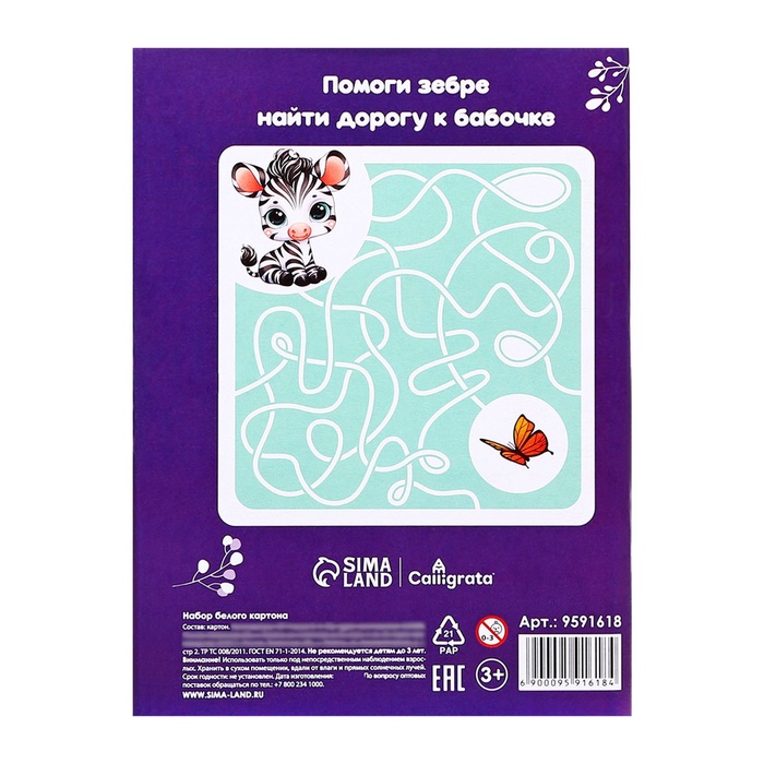 Картон белый А4, 6 листов немелованный односторонний 200 г/м2 в пакете «1 сентября»