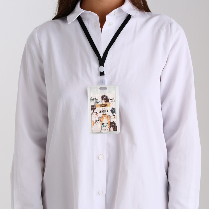 Бейдж-карман вертикальный пластиковый, внешний 110x68мм, внутренний 85x54мм, лента 80x2см, чёрный.