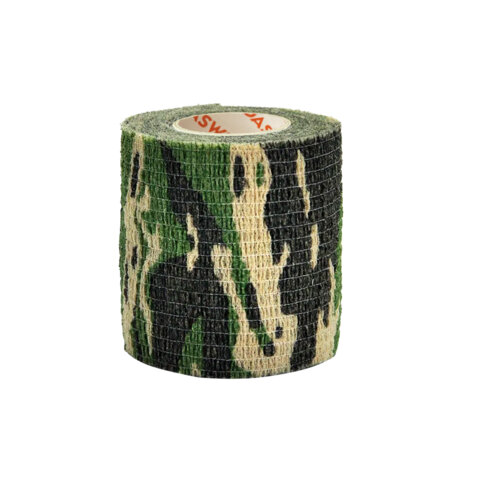 Когезивная эластичная тканная камуфляжная лента прекрасно обтекает любые поверхности. Улучшает удержание огнестрельного оружия и ножей в руке. Это очень важно при охоте в сложных условиях (скалы, густая растительность, непогода). Снижает «лязг» оружия, устраняет его блики. Обладает теплоизолирующими свойствами (охота при низких температурах). Предотвращает скольжение. Предохраняет предметы от внешних механических повреждений, грязи и влаги.