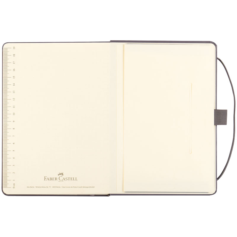 Бизнес-блокнот от легендарного немецкого производителя Faber-Castell с знаменитым логотипом: двумя рыцарями. <br/>Стильный, удобный, универсальный бизнес-блокнот в модных оттенках, а также с рядом полезных деталей предназначен для ведения различного рода записей и может применяться как в повседневной жизни, так и в учебе. Благодаря высококачественной бумаге, гелевые и масляные чернила не просачиваются, а твердая обложка защищает листы от смятия. <br/>Характеристики:<br/>- недатированный<br/>- формат А5, 194 страниц<br/>- твердый переплет со скругленными углами<br/>- матовая ламинация с тиснением UV-лаком<br/>- линовка – клетка<br/>- тонированная бумага – кремового цвета<br/>- поле для написания даты<br/>- плотность бумаги: 100 г/м2<br/>- цвет: бархатный серый<br/>Полезные детали Бизнес-блокнота:<br/>- закладка-ляссе<br/>- держатель для ручки, или карандаша <br/>- линейка на странице <br/>- резинка - фиксирует блокнот в закрытом виде <br/>- с архивным пакетом и архивной наклейкой для удобного архивирования, а также для хранения визиток и разных мелочей<br/>Бизнес-блокнот - идеально подходит для офиса, учебы и в дороге. Станет стильным, надежным и полезным подарком для успешных людей.