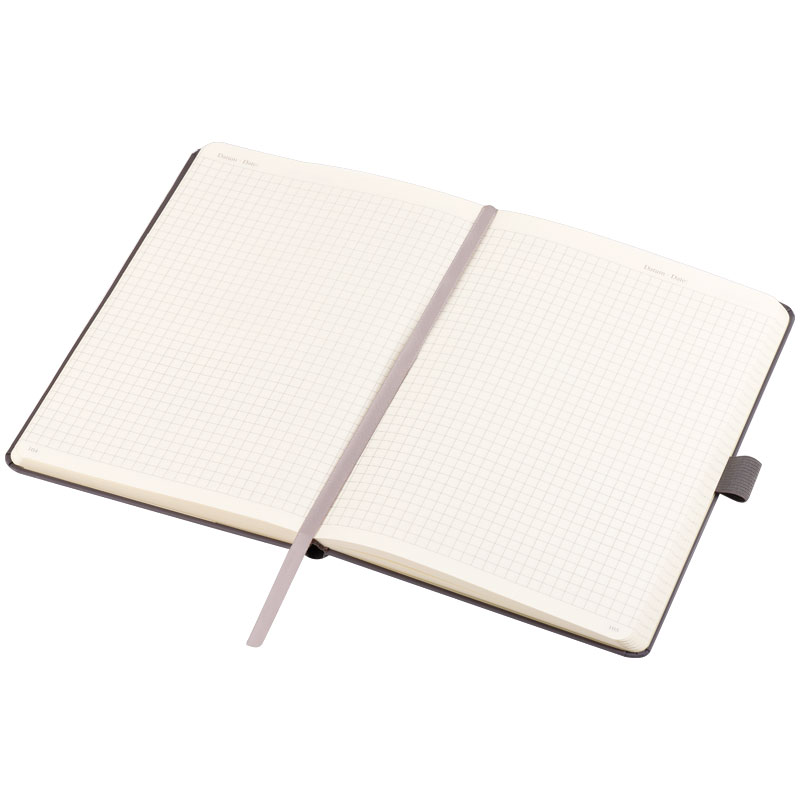 Блокнот А5 148x218 мм BRAUBERG "Optimal", под кожу, 80 листов, резинка, держатель для ручки, клетка, серый, 118638