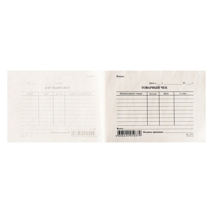 Товарный чек 2-х слойный самокопирующийся, А6 110х143мм, КОМПЛЕКТ 5 книжек по 50шт, STAFF, 130288