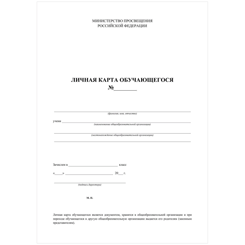 Бланк бухгалтерский офсет плотный, "Личная карточка обучающегося", А4 (200х275 мм), 2 л., STAFF, 130194