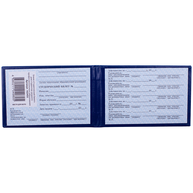 Образец бланка студенческого билета для студентов, осваивающих образовательные программы среднего профессионального образования (утв. приказом Министерства образования и науки РФ от 5 апреля 2013 г. N 240). Размер бланка 100*65 мм. Упаковка 50 штук в термоусадочную пленку.<br/>