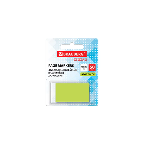Закладки клейкие Z-сложения неоновые зеленые BRAUBERG ZigZag, 45х25 мм, 50 шт., в диспенсере, 116678