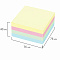 Стикеры 4 пастельных цветов (желтый, розовый, зелёный, голубой) в форме куба 76х76 мм состоят из 400 листов. Плотность бумаги составляет 75 г/м2. Клейкий слой - 22 Н/м. Легко клеятся к любой поверхности. Не оставляют следов. Упакованы в полиэтиленовую пленку.