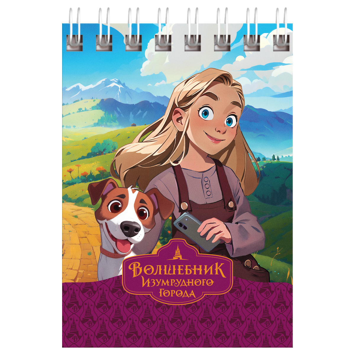 Блокнот на гребне BG серии "Волшебник Изумрудного Города" формата А7 (65*100 мм) состоит из 40 листов и отлично подойдет для записи нужной информации как детям, так и взрослым. Внутренний блок – офсетная бумага плотностью 60 г/м² с печатью в 1 краску, линовка – клетка, тип скрепления – гребень сверху. Яркая обложка блокнота изготовлена из мелованного картона. Блокнот в милом дизайне с любимыми героями из Волшебника изумрудного города станет не только приятным аксессуаром в повседневной жизни, но и отличным подарком. Представлено 8 вариантов дизайна. <br/>• Формат: А7 (65*100 мм);<br/>• Кол-во листов: 40;<br/>• Линовка: клетка;<br/>• Тип скрепления: гребень/ спираль;<br/>• Материал обложки: мелованный картон.