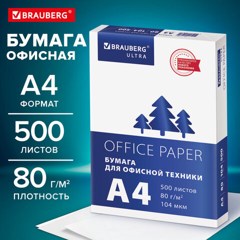 BRAUBERG ULTRA – классическая офисная бумага. Подходит для всех классов копировальных аппаратов и принтеров.