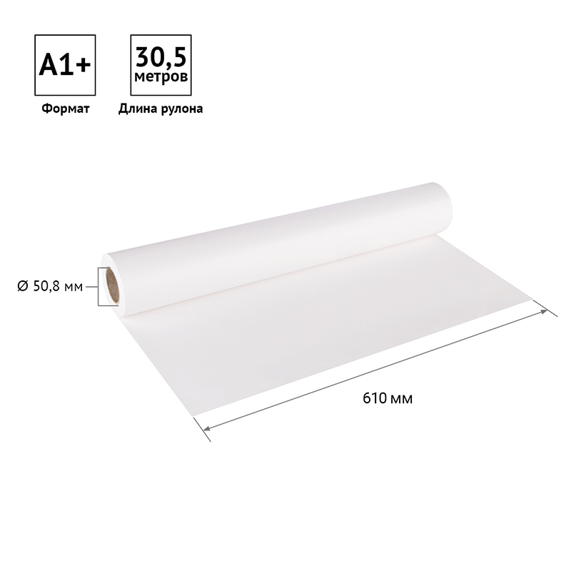 Размер бумажного полотна составляет 610 мм (24 in), что соответствует формату А1+. Длина рулона - 30,5 м (100 ft). Внутренний диаметр втулки - 50,8 мм.