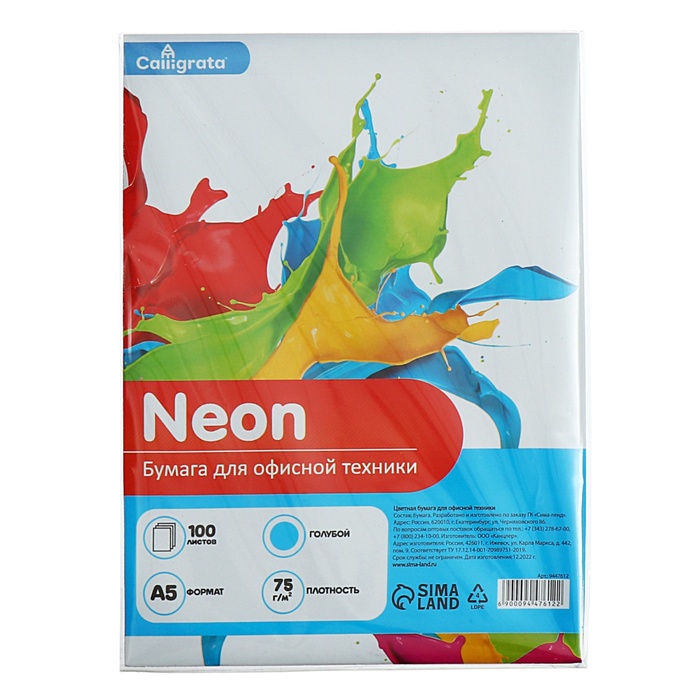 Бумага цветная А4 250 листов Calligrata Умеренный интенсив, 5 цветов 80г/м2, АМБАЛАЖ