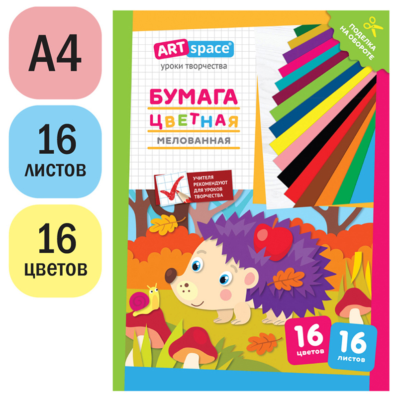 Набор цветной бумаги ArtSpace идеально подойдет для создания красочных апликаций, изготовления открыток и поделок. Прекрасно подойдет детям для развития моторики и фантазии ребенка. Рекомендована для уроков труда и технологии.<br/>В наборе представлены 16 ярких цветов односторонней мелованной бумаги на 16 листах. Размер 200*275.<br/>Обложка - мелованная бумага. Тип скрепления - 2 скобы.<br/>На обороте обложки предложен интересный вариант поделки.<br/>Транспортная упаковка: крафтбумага по 30шт.