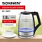 Электрический чайник SONNEN KT-1807 имеет надежный корпус из прочного термостойкого стекла и основание из нержавеющей стали.