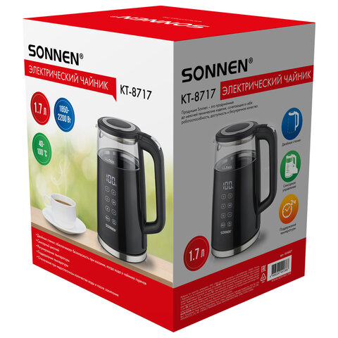Стильный чайник SONNEN KT-8717 с электронным дисплеем станет прекрасным дополнением домашнего или офисного интерьера. Функционал данной модели придется по душе всем любителям чая.