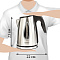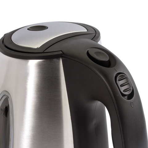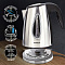 Мощность чайника составляет 2200 Вт, что позволит воде закипеть за считанные минуты. На крышке чайника находится кнопка открывания, что делает удобной его эксплуатацию. Скрытый нагревательный элемент увеличит срок службы. Индикатор уровня воды позволит с легкостью определить количество воды в чайнике. Сменный нейлоновый фильтр предотвратит попадание накипи в напиток. Автоотключение при недостаточном количестве воды и защита от перегрева делают данную модель чайника безопасной в использовании. Безопасность данной модели чайника увеличивает пластиковая вставка на крышке. LED-подсветка проинформирует о том, что чайник включен, и процесс нагрева воды запущен. Шнур чайника, при необходимости, можно спрятать в специальный отсек, расположенный в подставке.